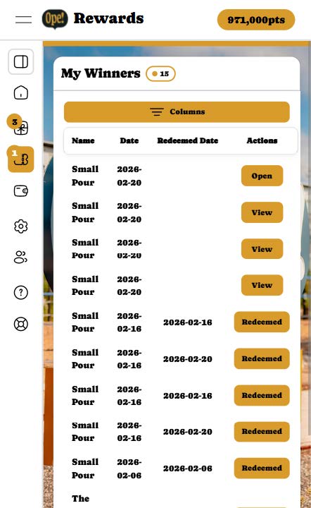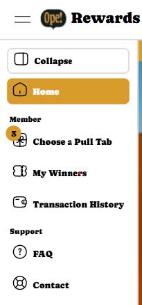 If you have an account, you will see a button on the top left which will expand the menu. This will be how you access the various pages of the Ope! Rewards website.